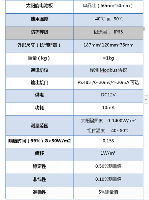 硅基輻照度傳感器是錦州陽光氣象科技有限公司根據(jù)太陽能電池板的特性,專門為光伏發(fā)電行業(yè)研制的一款低成本、高可靠性的太陽輻照度測量傳感器。