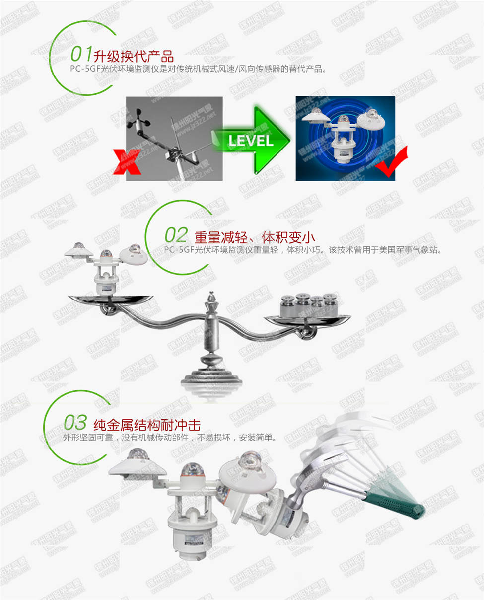 2. 一體化結(jié)構(gòu)設(shè)計,美觀便攜,采集器與傳感器采用一體化設(shè)計理念,與觀測支架連接采用插拔式安裝模式,沒有任何移動部件,安裝拆卸簡單,是目前為止安裝最為便捷的光伏環(huán)境監(jiān)測儀。