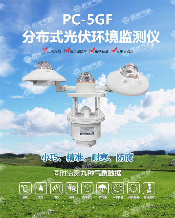 PC-5GF分布式光伏環(huán)境監(jiān)測儀是錦州陽光氣象科技有限公司自主研發(fā)的一款便于安裝、測量精度高、性能穩(wěn)定,并集成多項氣象要素為一體的具有金屬防爆外殼的環(huán)境監(jiān)測儀。本產(chǎn)品根據(jù)太陽能資源評估、太陽能系統(tǒng)監(jiān)測需要,并結(jié)合國內(nèi)外太陽能觀測系統(tǒng)的先進技術(shù)研制而成的。